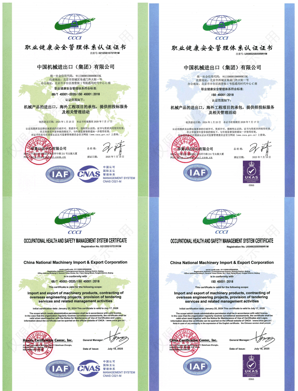经过六十多年的辉煌,始终把客户放在第一位的中机公司,针对国际工程承包、国际贸易等业务,自2001年建立、实施并保持ISO9001质量管理体系,通过了SGS的第三方认证。公司始终秉持“客户至上,诚信经营,创造价值,精益求精”的质量方针,致力于为客户提供高品质的产品和服务,积极响应国内和国际标准,通过持续改进和不断创新,将追求客户100%的满意率,及股东、员工、社会、合作伙伴等相关方高满意率,实现公司持续稳定发展的经营理念贯穿于公司经营管理活动的全过程,持续改进质量管理流程,不断完善质量管理体系。