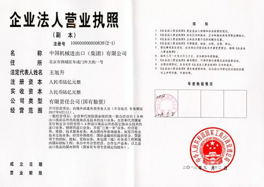 中国机械进出口(集团)有限公司(简称"中机公司")成立于1950年,1998年成为中央直接管理的国有重要骨干企业中国通用技术(集团)控股有限责任公司的全资子公司,是新中国最早的以经营机电产品进出口贸易和国际工程承包业务为主的大型国有外贸公司,自成立至今累计完成经营总额逾千亿美元。2004年以来,中机公司连续进入全球最大225家国际承包商行列。